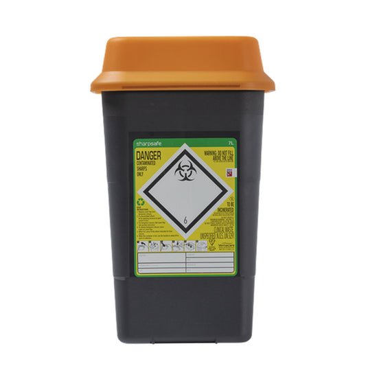 Sharpsafe® Sharps Container | Wide | Orange Lid | 7-Litre