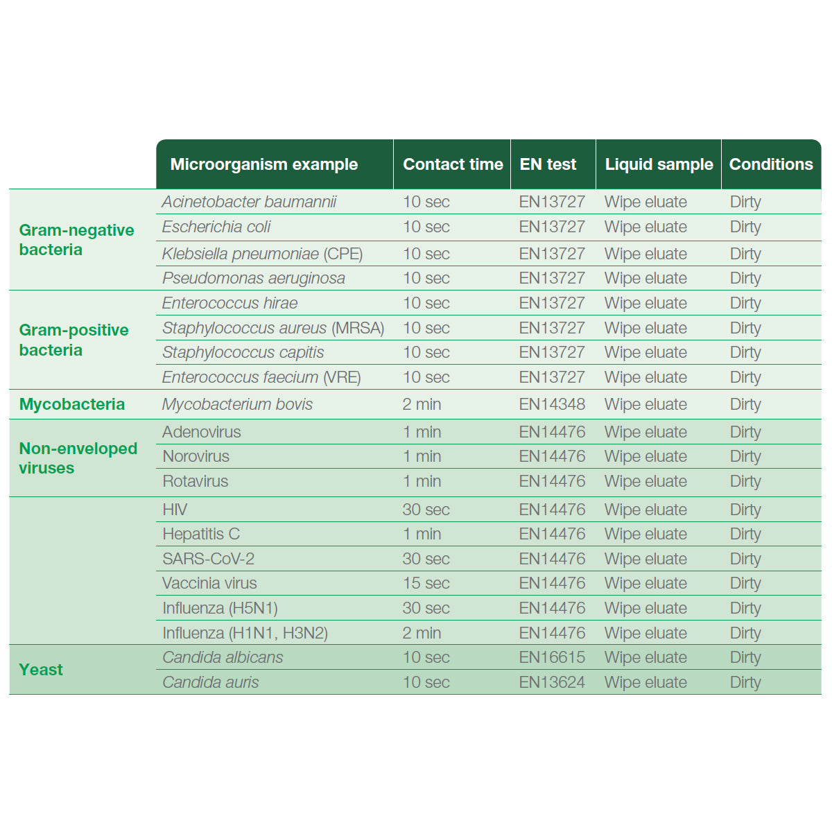 - Rapid efficacy: Kills 99.999% of pathogens from 10 seconds