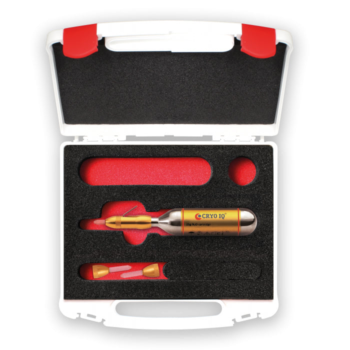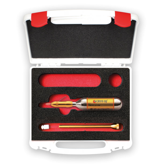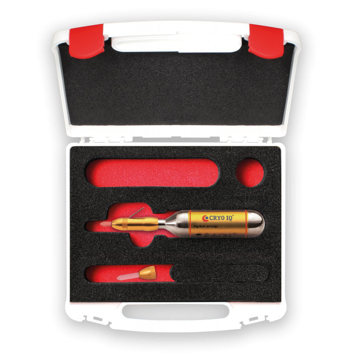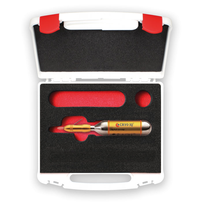 CryoIQ PRO Liquid Device offers the same reliability as the DERM device but you can change the tip for different areas of application, such as dermatology, dentistry, podiatry, gynecology/urology, and veterinary. Specially designed for the treatment of warts and other common skin lesions. The unique design includes a built-in non-return valve that prevents gas from leaking, ensuring you get the most out of your N2O cartridge.