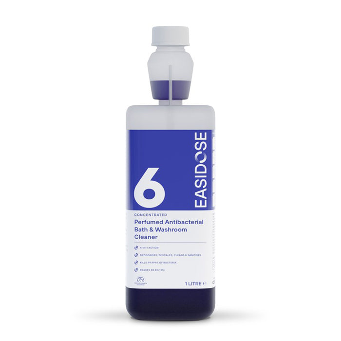 The Easidose Bath & Washroom Cleaner is the perfect cleaning product for washroom surfaces including showers, sinks, taps, WCs, tiles, glass and floors. Containing a highly effective antibacterial agent and descaler, the Easidose Bath and Washroom cleaner remove soiling, body oils and limescale deposits from surfaces whilst leaving a pleasant fragrance to refresh the room.