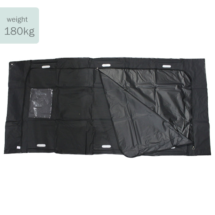 P.E.V.A. Grab Handle Body Bag includes 2 inbuild document pockets for notes and ID as well as 6 grab handles. Designed to be fluid retentive, this product has a body weight rating of 180kg.