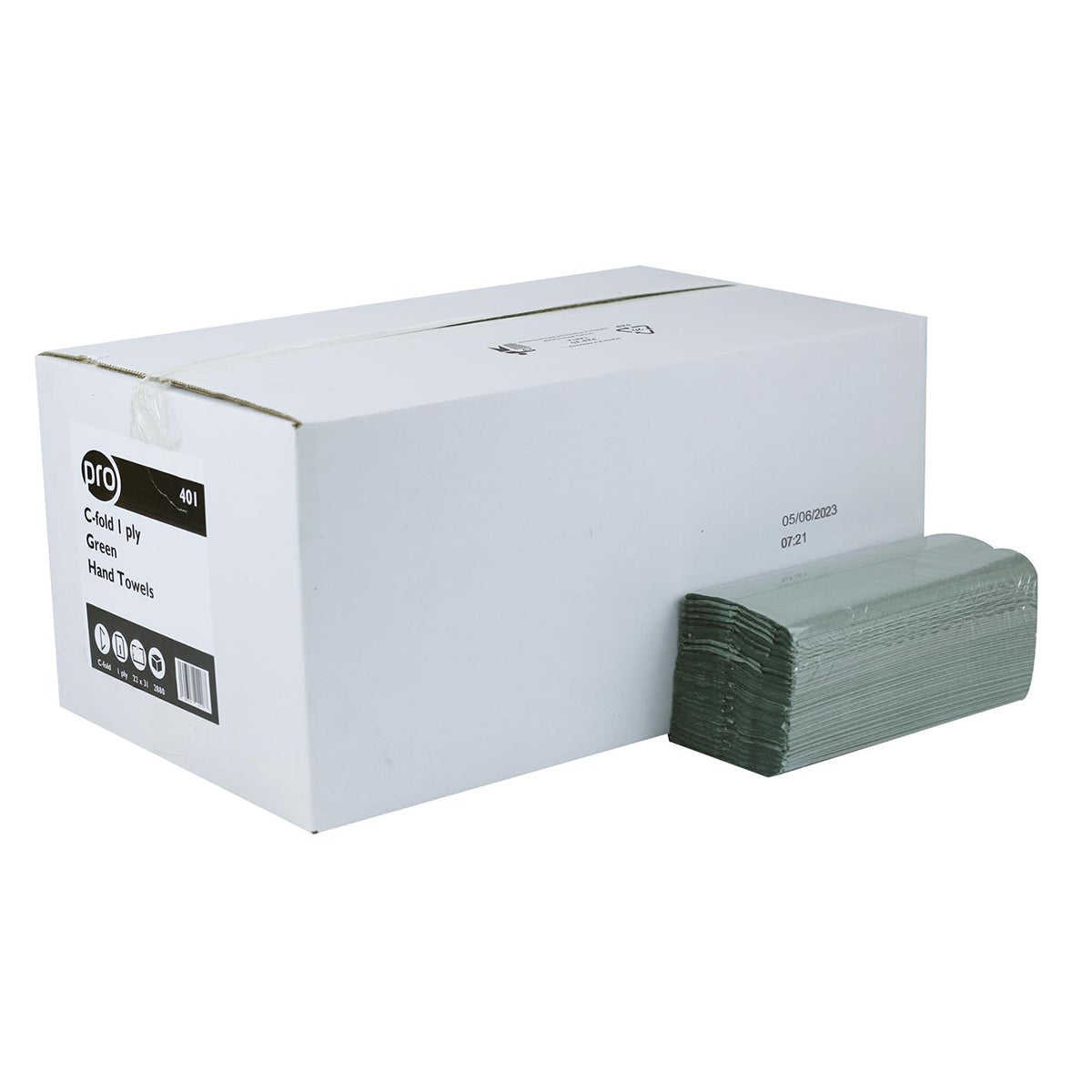 PRO C-Fold Hand Towels | Green | 1Ply | 22cm x 25cm | Pack of 2880