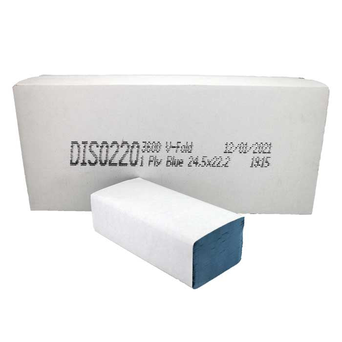 Hand Towels | V-Fold | Blue | 1Ply | 24.5cm x 22cm | Case of 3600