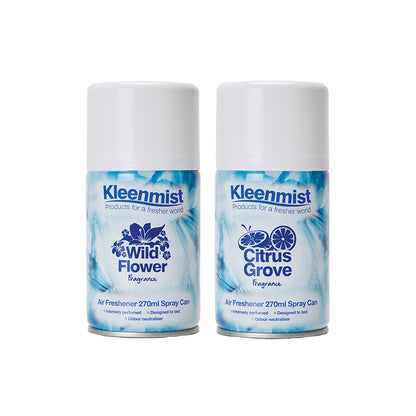 The Kleenmist Metered Fragrance Aerosol is a highly efficient solution for immediate odour control. This 270ml canister is designed to deliver up to thirty days of continuous odour management in spaces spanning up to 6000 cubic feet. Specifically crafted for use with AD100 dispensers, Kleenmist offers a versatile selection of extra-strength fragrances to suit your preferences.