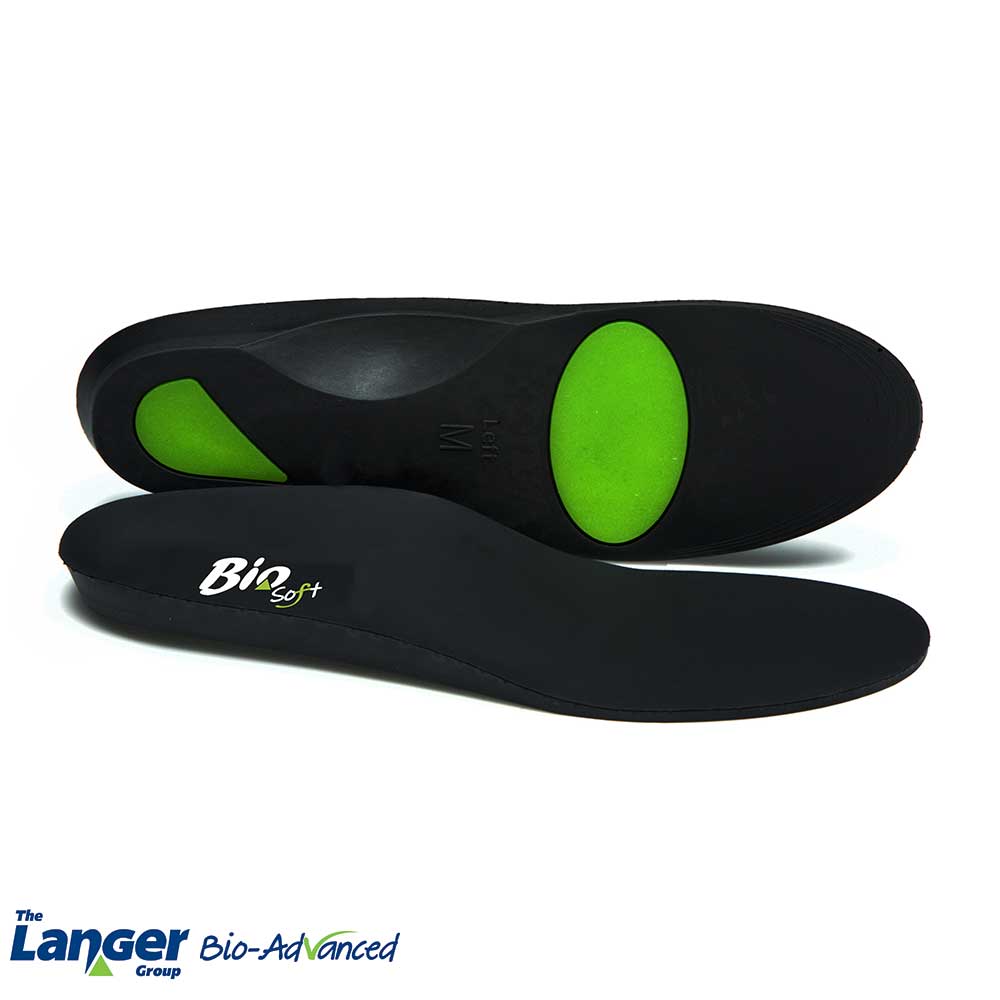 Langer Bio-Soft insoles are dual density polyurethane insoles offering excellent comfort and shock absorbency. With a wipeable Polyurethane top cover, Bio-Soft insoles are perfect for use during sports activities. With a forefoot and rear foot soft spot, these insoles provide excellent support to vulnerable feet and diabetic patients.
