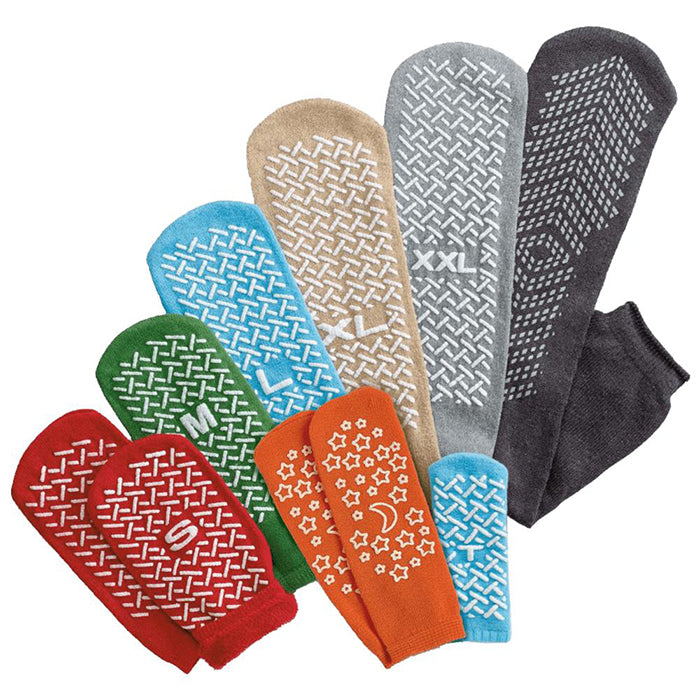 Medline’s Double-Tread Slipper Socks offer an anti-slip sock solution that has double-sided treads, providing continuous gripping for patients who are at a high risk of falling—regardless of how they are put on or if they twist during wear.