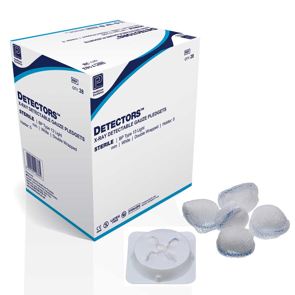 Premier X-Ray Detectable Pledgets 0.95cm x 1.25cm are manufactured from 100% cotton gauze and supplied sterile in a plastic holder to promote best practice. Premier Detector Pledgets ref 7163 are X-Ray detectable are double wrapped in line with aseptic opening techniques.