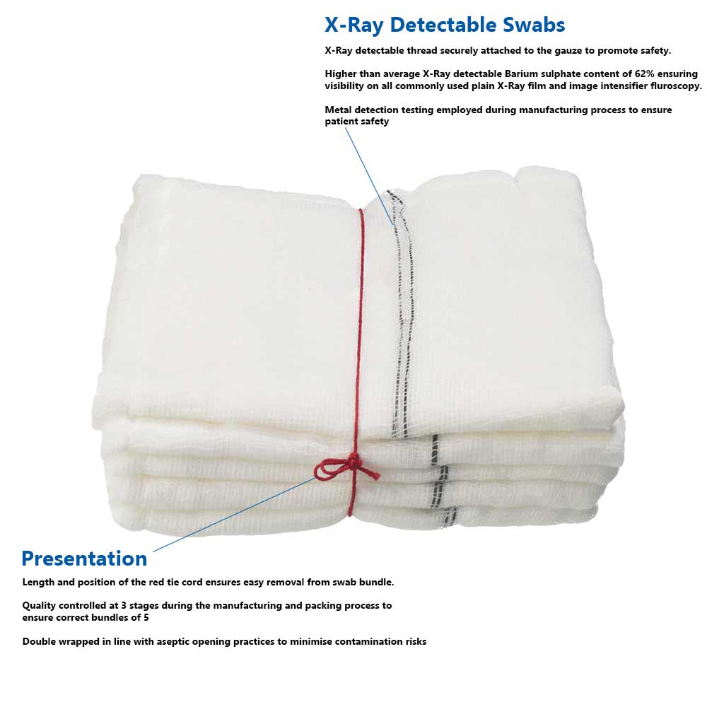 - Quality control during manufacture includes visual inspection, metal detection and checks for correct bundles of tied 5 to ensure patient safety.