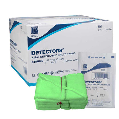 Premier X-Ray detectable gauze swabs 7.5cm x 7.5cm 8Ply green.