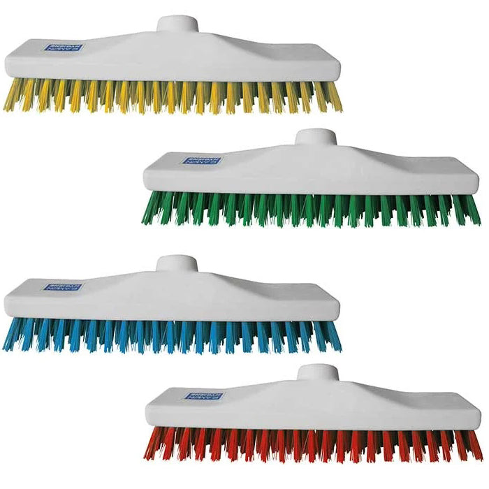 The Ramon Colour Coded Scrubbing Broom 30cm is a vital tool in maintaining pristine environments in various establishments. Crafted with eco-conscious efforts, this broom features a brush block made entirely from 100% recycled plastic, supporting your commitment to sustainability. It is an excellent choice for sectors where hygiene and cleanliness are paramount.