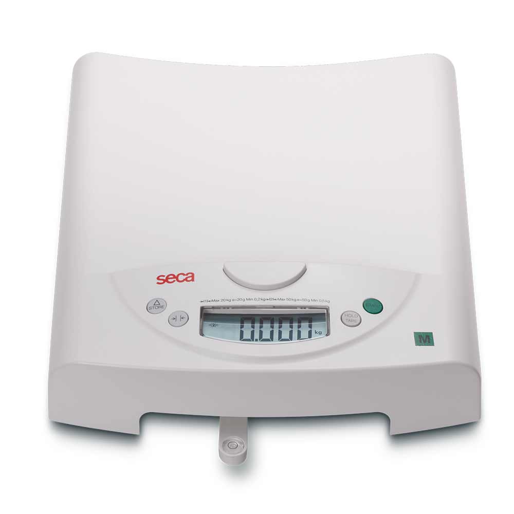 Babies can be weighed safely and comfortably in the tray of the seca 384. The rounded shape of the tray with its slightly raised sides gives the baby a feeling of security. By detaching the tray from the base, the scale is converted into a fully functional digital floor scale with a capacity of 20 kg, great for weighing small children.