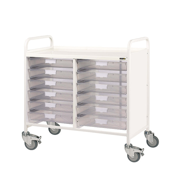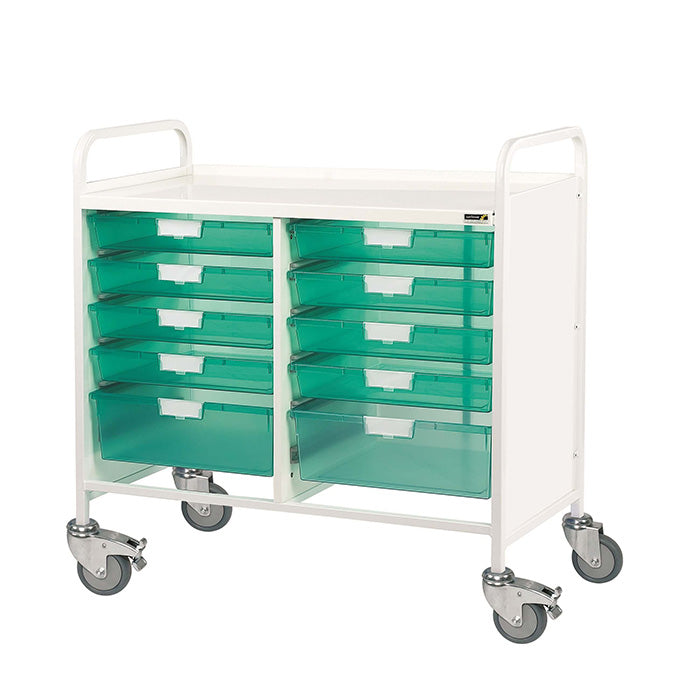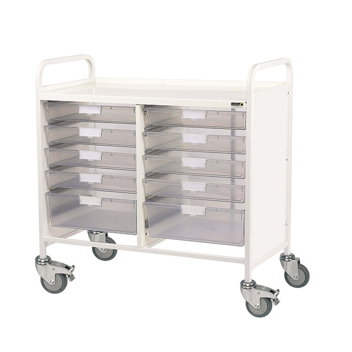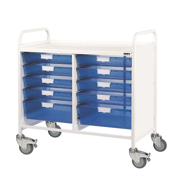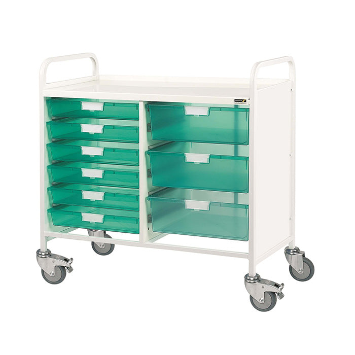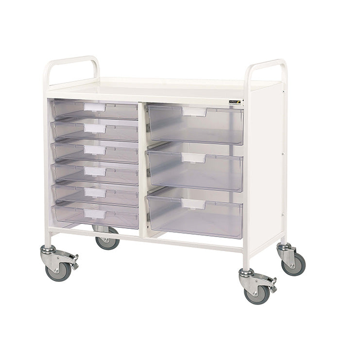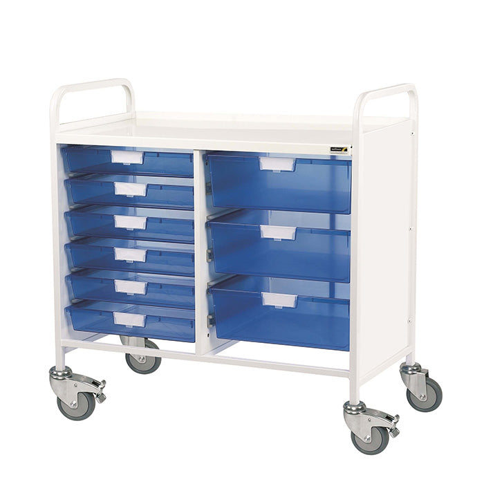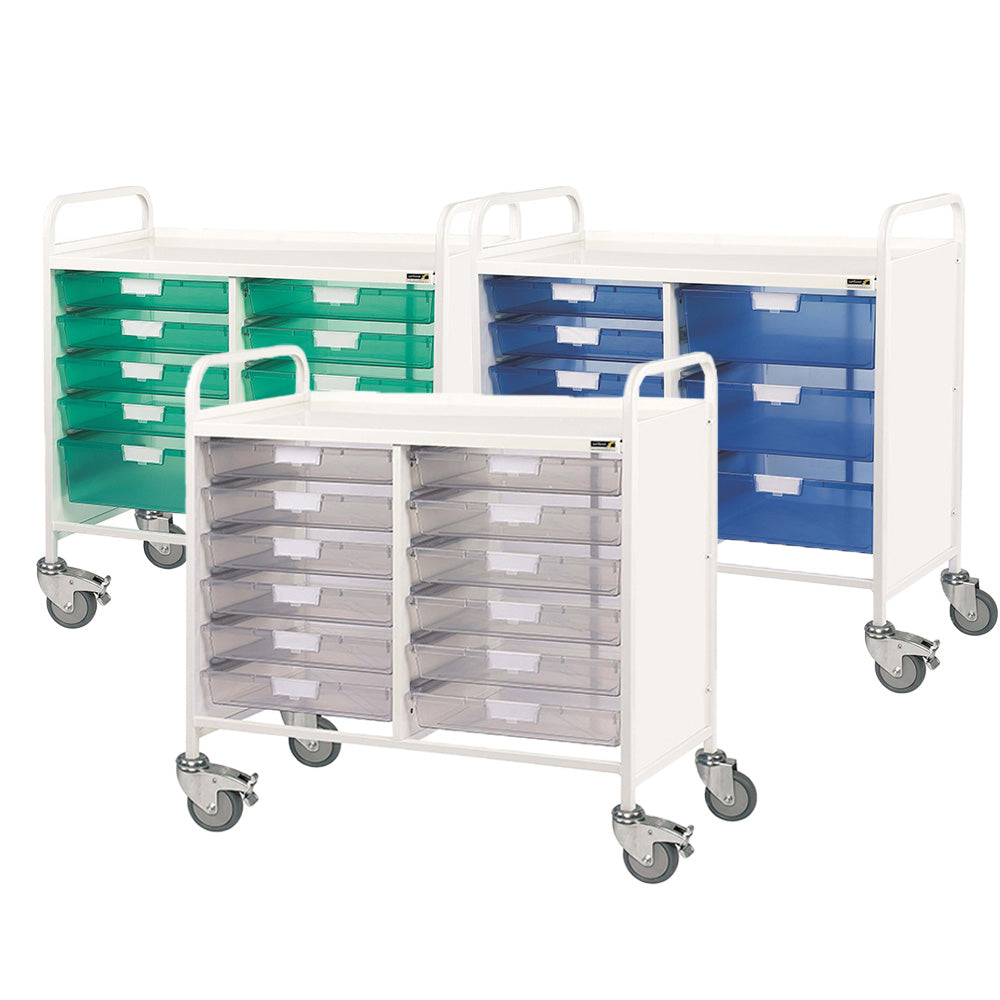 The Sunflower VISTA 100 is a high-quality, double-wide column medical and storage trolley, ideal for use in hospitals, clinics, and general practices. Designed for durability and ease of use, it offers excellent storage flexibility with a tilt and locking tray system that integrates seamlessly with all other Vista products.
