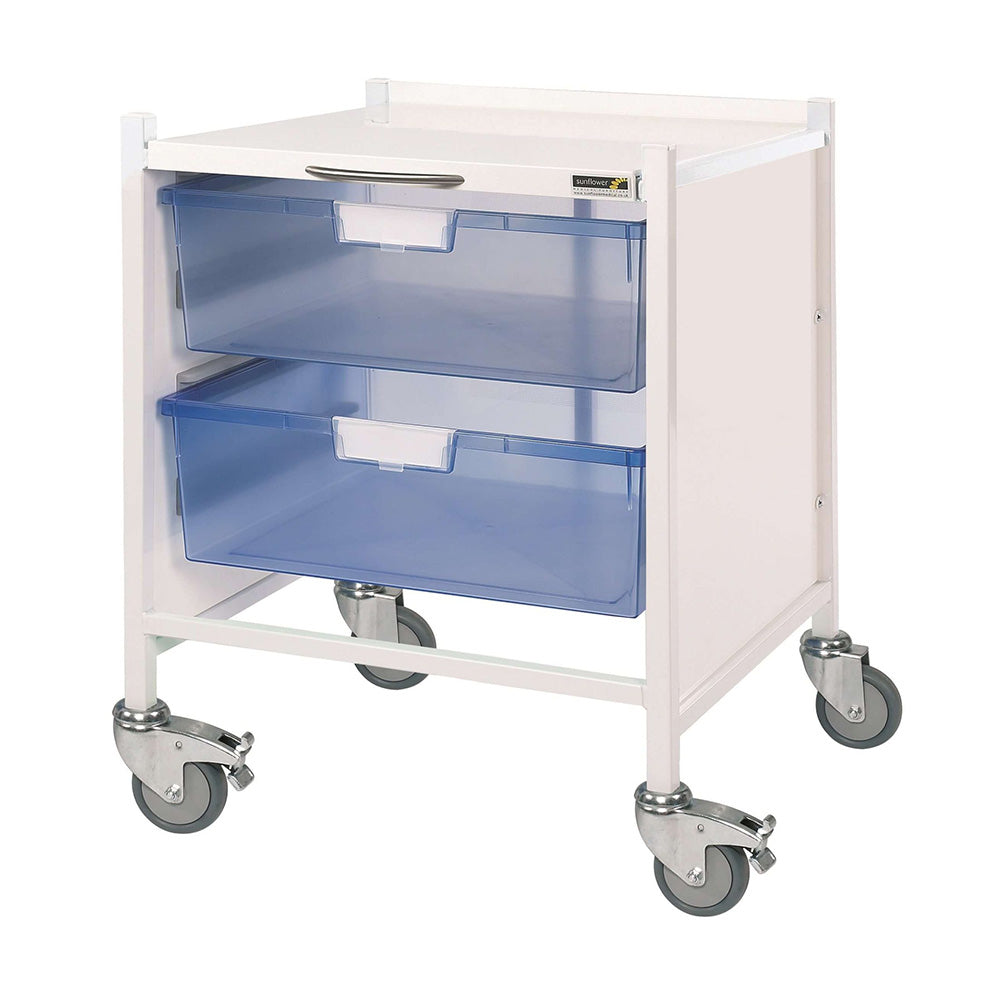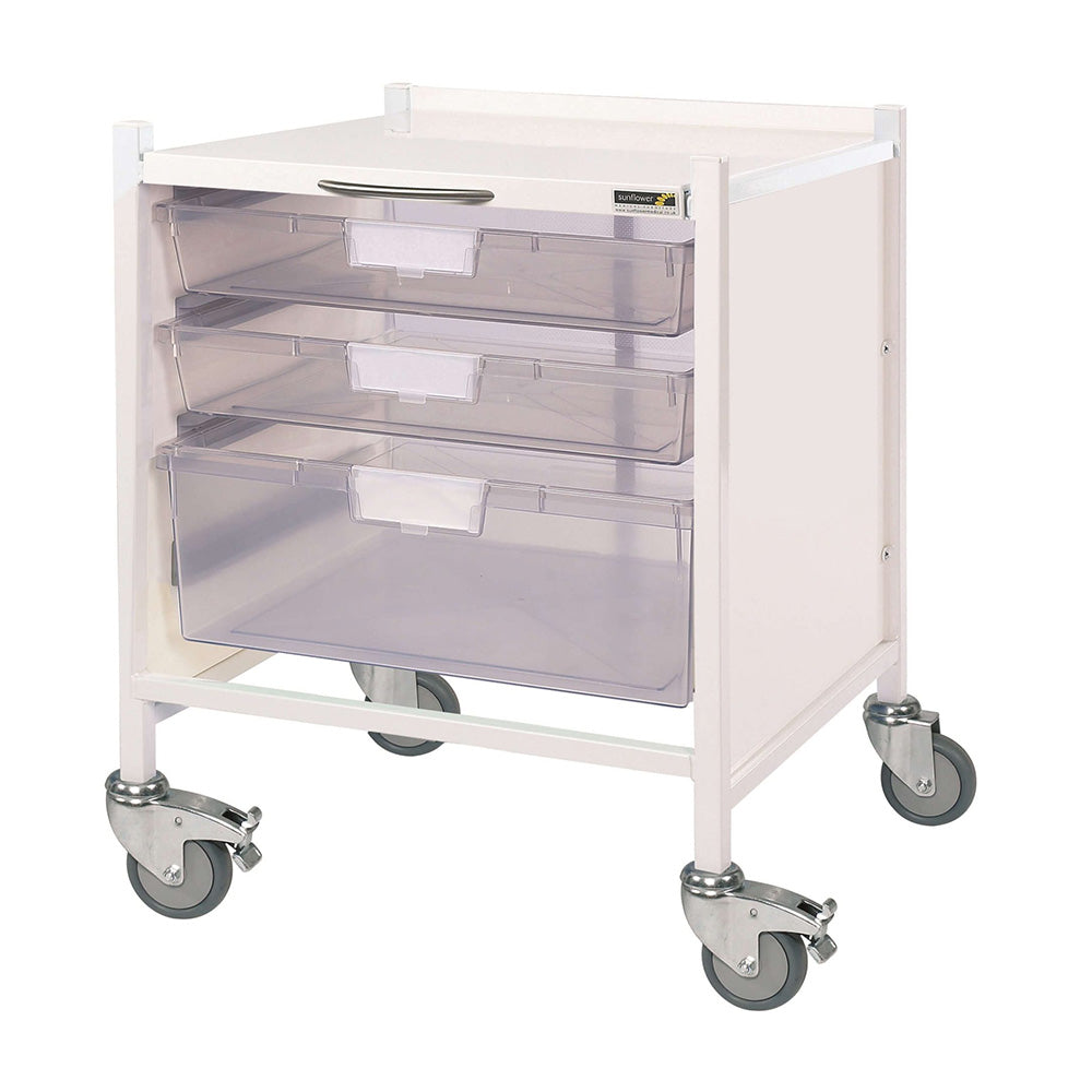 The Sunflower VISTA 15 Trolley is an extra low-level medical storage trolley designed for easy access and seamless integration into clinical environments. At just 68cm high, it is perfect for positioning under a couch, making it ideal for GPs, nurses, and surgeons who require organised and efficient storage.