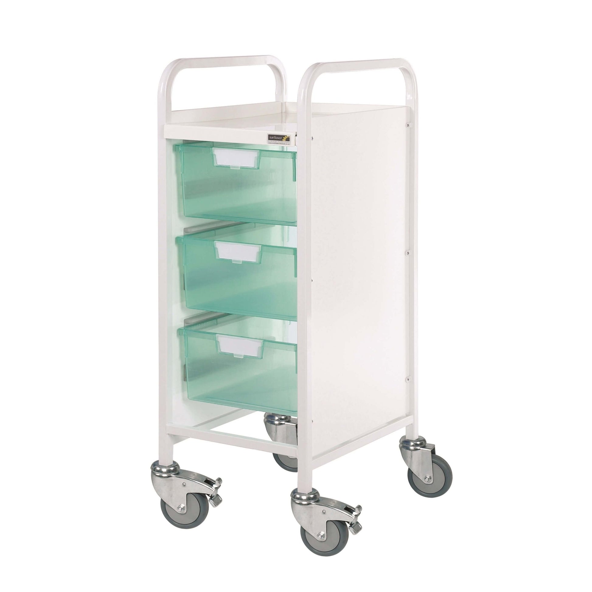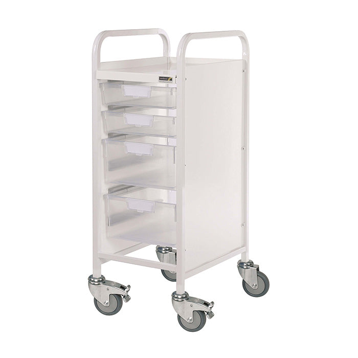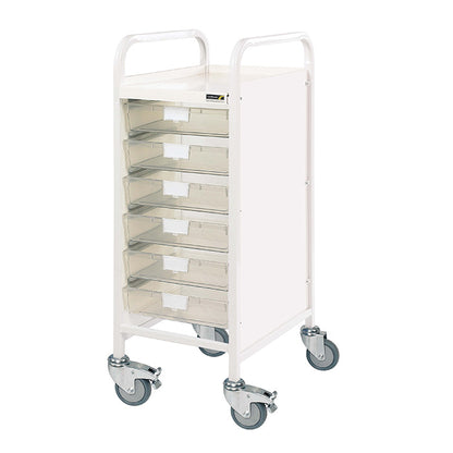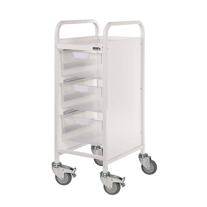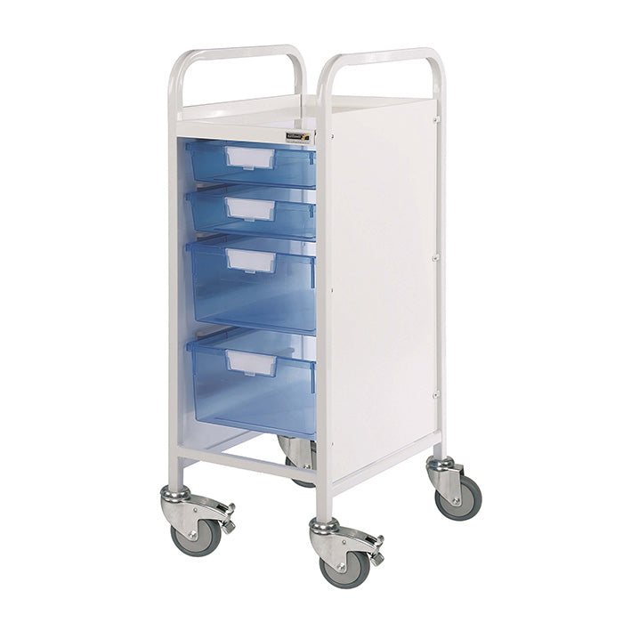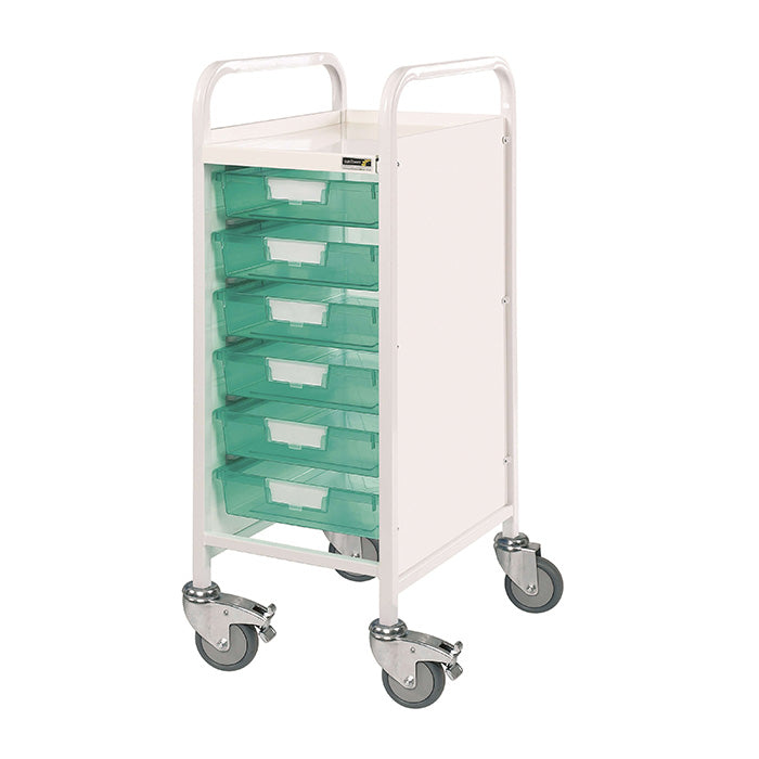 The Sunflower VISTA 30 Trolley is a compact medical storage solution, ideal for GP surgeries, hospitals, and other healthcare settings where space is limited. Designed for durability and ease of use, it features a narrow frame, smooth manoeuvrability, and versatile tray options to suit different storage needs.
