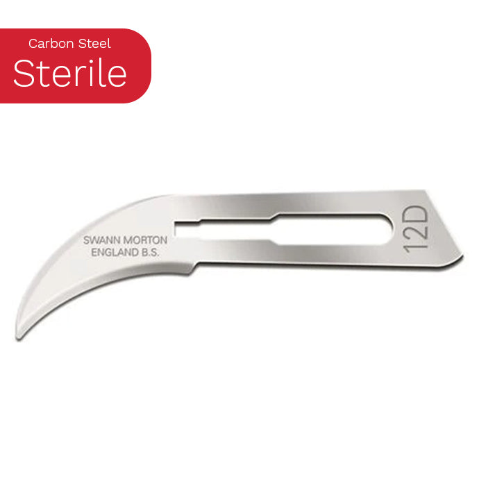 The Swann Morton 12D carbon steel blade can be honed to a very sharp edge, whilst being more wear resistant than stainless steel.