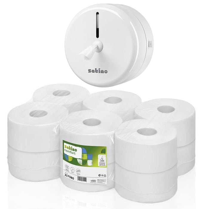 The WEPA Satino Comfort Centre Pull Toilet Rolls are designed for use in centre-pull toilet roll dispensers.